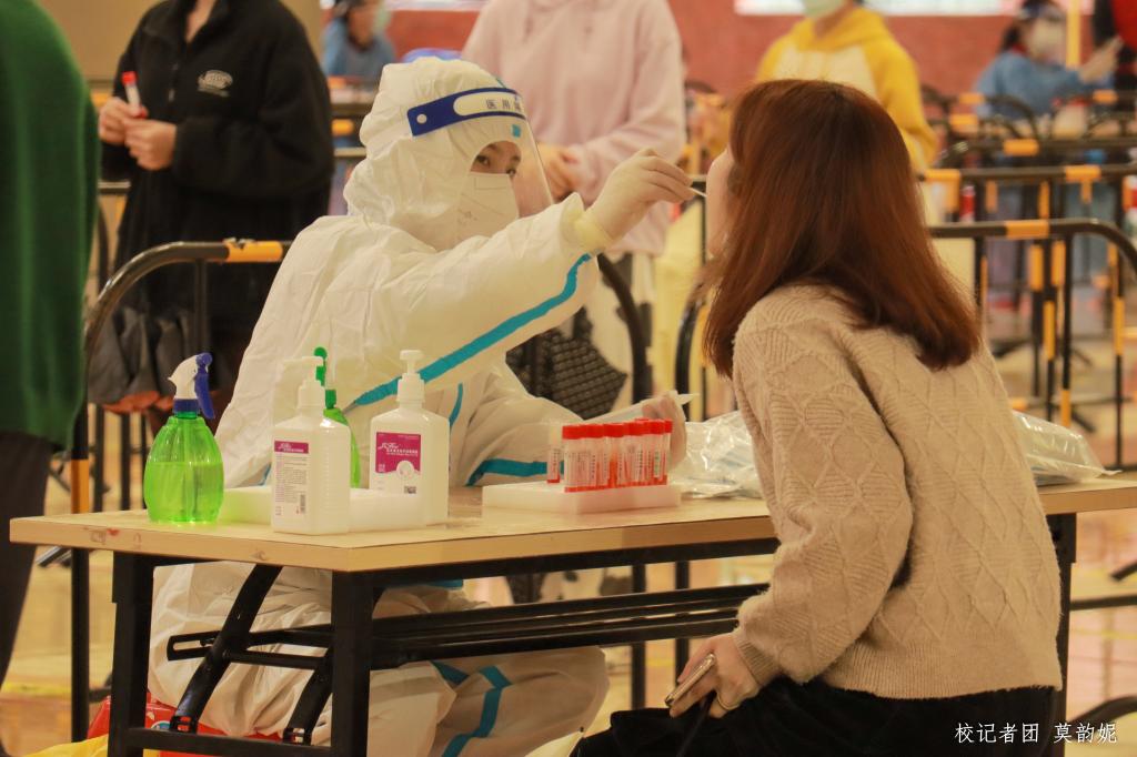 为确保本次全员核酸检测工作顺利完成,学校高度重视、精心组织安排,各工作组通力配合,合力护航校园安全。有关部门人员一线参与检测现场人员对接、设施摆放、受检师生、职工组织等全部过程。学生志愿者分别值守在各出入口,为检测工作顺利进行提供保障。采样现场,单口进入、单口离开,全体师生员工按照防疫要求保持安全间隔距离一次进行采样,结束后迅速离开现场,整个过程有序、顺畅、高效。