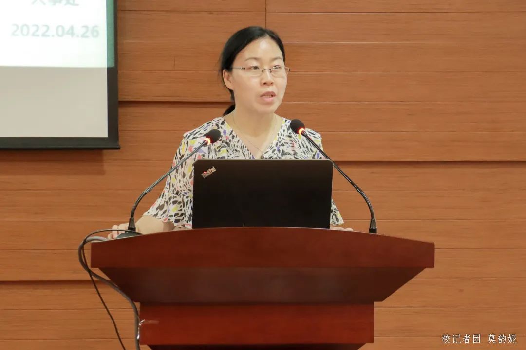 在大会发言环节,来自鸭脖职称审核工作小组的旷美容、黄静萍、孔海兰三位代表详细讲解了2021年职称申报材料的填写要求及注意事项,包括申报表推荐表的填写、如何界定科研教研情况及指导学生参加社会实践等内容,帮助职称申报的教师进一步明晰申报要求,规范申报材料的填写,凝心聚力为顺利完成职称评审工作做充足的准备。