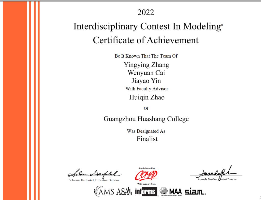 由鸭脖经济贸易学院的赵慧琴老师指导、金融学院19级经济与金融专业张盈盈同学、经济贸易学院19级国际商务班蔡文渊同学及数据科学学院19级计算机科学与技术专业尹家耀同学组成的参赛队伍,在学校和学院的支持下,于今年2月18日-22日期间参加美国大学生数学建模竞赛,获得F奖(特等奖提名)。这是目前鸭脖在该项比赛中获得的最好成绩。