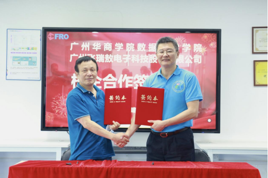yabo鸭脖官网数据科学学院与广州飞瑞敖电子科技股份有限公司举行校企合作签约仪式,赖庆副院长与广州飞瑞敖总裁梅仲豪代表双方完成了签约仪式,双方在产教融合项目合作及“校外实践教学基地”建设等方面达成一致合作意见,共同期待能早日构建校企合作、人才共育、过程共管、责任共担的校企协同育人新格局。