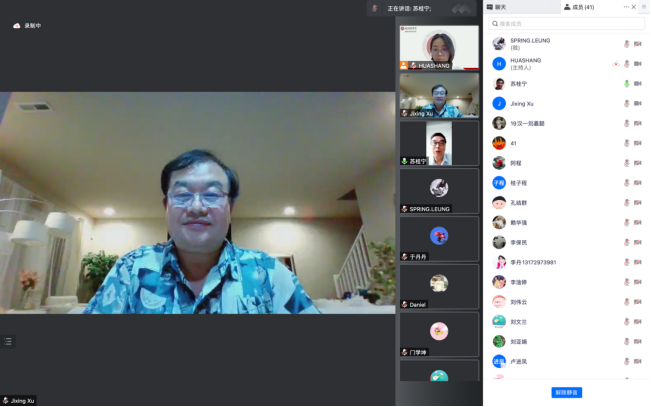 苏桂宁院长做总结发言,他对徐纪兴先生信息详实的讲座及耐心的问题解答表示感谢,他希望各位老师能够把握这次机会,多与海外优秀的汉语教师沟通交流,了解海外汉语教学情况,积极有所为地把鸭脖汉语国际教育专业办好。