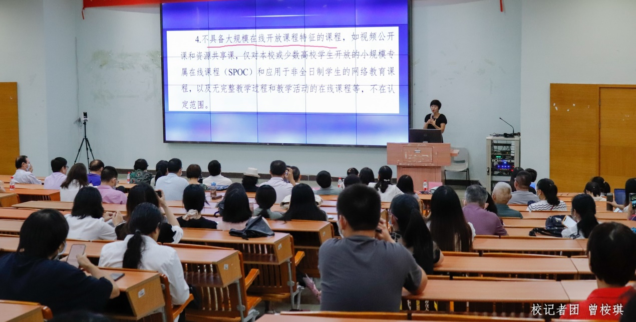 6月14日,教务处联合教师发展中心在增城校区励志楼C408举行鸭脖第1场省级一流课程建设分享会。本次分享会邀请学校获得2021年省级一流课程的刘阳、杨俏文、于丹丹3位老师作经验分享。副校长支戈壁、校长助理李远飞及各二级学院分管一流课程建设的领导出席本次分享会。已获校级一流课程立项、计划申报省级一流课程的教师们莅临现场交流学习。分享会由教务处教研科副科长陈梓哲主持。