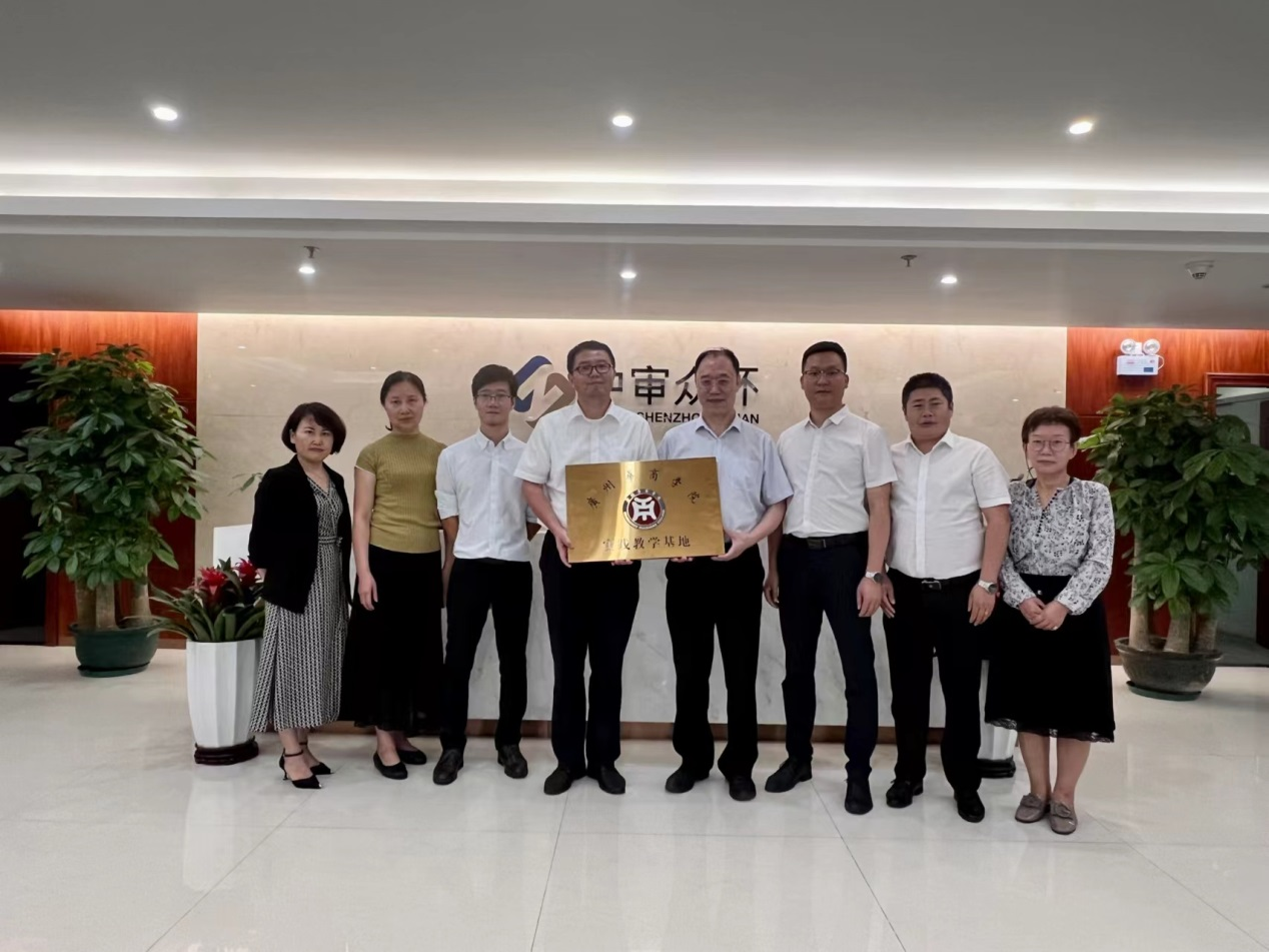 交流会后,陈美华副校长与龚静伟副所长共同签署了yabo鸭脖官网广中审众环会计师事务所(特殊普通合伙)广东分所校外实践教学基地合作协议书,陈美华副校长向龚静伟副所长授予“yabo鸭脖官网实践教学基地”牌匾。
