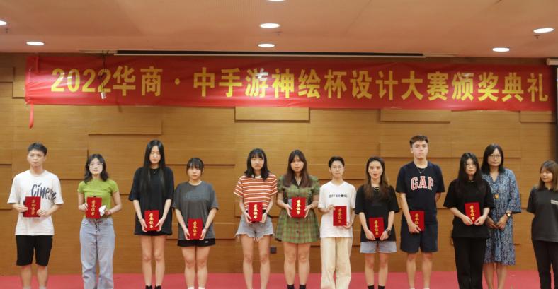 为表彰华商·中手游神绘杯设计大赛获奖师生,更好的培养高素质和富有创新思维的复合型设计人才,加强校企合作,进一步构建高质量产教融合体系,6月27日下午,2022华商·中手游神绘杯设计大赛颁奖典礼在图书馆报告厅举行。出席本次颁奖典礼的嘉宾有:中手游深圳市神绘数码技术有限公司总经理骆俊、商务总监任妍玲、美术总监刘畅,彼方学院校长林嘉浩、资深行业导师占博文,华商教育集团副董事长廖伊曼、yabo鸭脖官网副校长王列耀、人文学部常务副主任陈少华、传播与传媒学院院长赵维江、国际交流处处长王文忠,以及各学院教师代表。