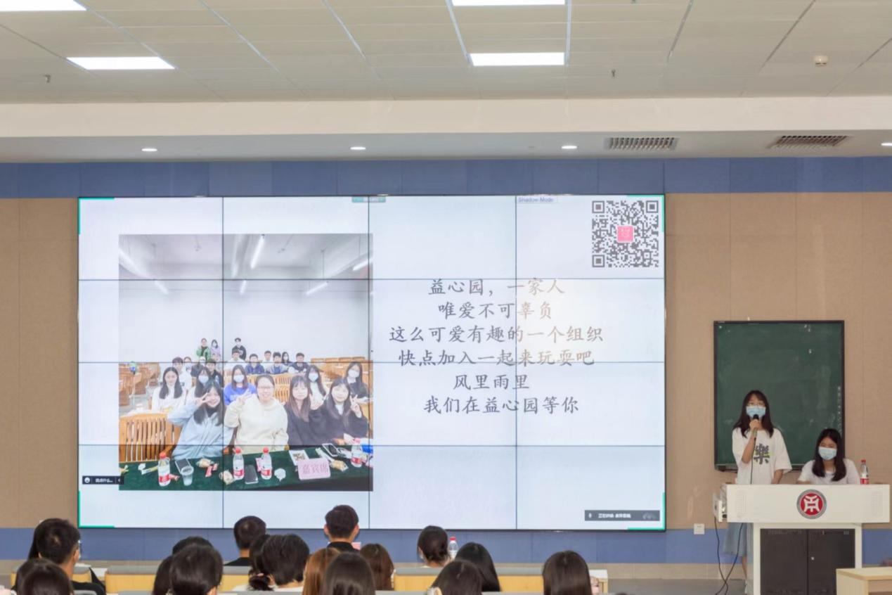 益心园学生干部代表黄思韵同学为新生们介绍了益心园的构成,带领新生们了解了益心园的职能,希望同学们能加入其中,帮助他人。易班学生干部代表黄有豪同学为新生们介绍了易班的功能、作用,也为新生们展示了经贸学院易班的成就和活动,希望同学们能加入到易班大家庭中创造自身的价值。