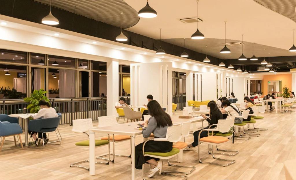 学生在优美的学习环境下自习