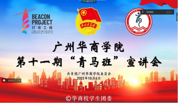 为深入学习宣传贯彻习近平总书记在庆祝中国共产主义青年团成立100周年大会上的重要讲话精神,激励华商青年牢记青春使命,践行“请党放心,强国有我”的青春誓言,成长为中国特色社会主义事业的合格建设者和可靠接班人。yabo鸭脖官网第十一期“青马班”学员选拔宣讲会于10月6日晚上19:30在线上开展。