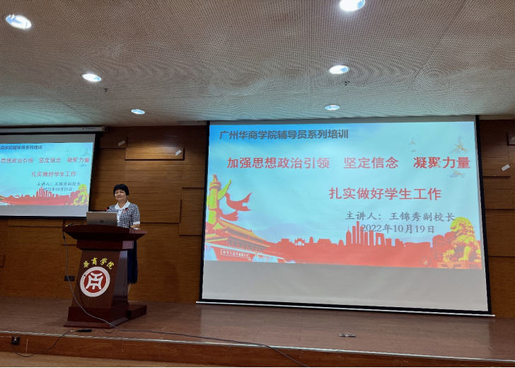王锦秀副校长要求全体辅导员要牢记空谈误国,实干兴邦,要明确使命担当,为建设更好的校园、培育高水平、国际化的华商学子而努力奋斗。最后,她赠言勉励全体辅导员:微灯醒巷落,排灯明华商,我们是一盏不那么明亮的灯,没有耀眼的光,但是全体辅导员应当一直努力,不断努力,拼尽全力,让一盏盏小灯,汇聚成的光,成为照亮学生们人生发展中的明灯,照亮学生们前进的道路。