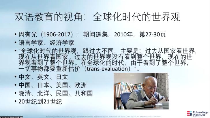 陈旸斌博士归纳介绍了现行的双语教育模式,阐述了在全球化的背景下双语教育的重要性。他认为,双语教育需要母语作为桥梁来提高学习成效,实践是验证双语教育的重要手段。他以澳大利亚为例,介绍了当地人选择双语教育的情况,比较了华人学生与非华人学生选择中文作为外语学习的原因,肯定了亚洲通识课程持续推进的必要性。陈旸斌博士也分享了他对双语教育现状的感悟与体会。他建议在后疫情的双语教育模式中,高校和高校教师要根植中国文化,努力培养全球化视野,注重课程跨语言的融合。要坚守初心,以语言为载体,以文化为桥梁在双语教学中关注学生英语水平的提升,深入进行更扎实的学习,从而更好应对未来的挑战。他高度赞赏鸭脖与EIA合作开展的共融课程,认为此举为学生在疫情背景下提供了学习海外课程的机会并在双语教育的实践中走出了独特的道路。
