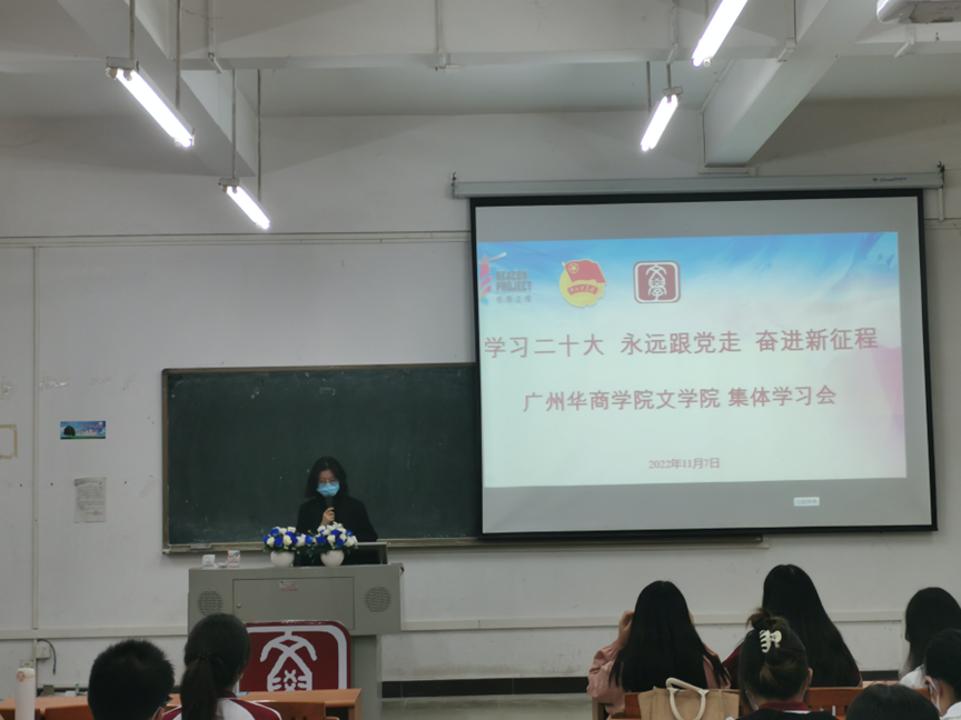 为深入学习宣传贯彻党的二十大精神,学习领会习近平新时代中国特色社会主义思想,进一步加强对青年学生的思想引领,文学院团委于2022年11月7日,开展“学习二十大、永远跟党走、奋进新征程”主题专题学习会,本次学习会由文学院团委书记王怡荻,团委副书记、学生会指导老师陈梦洁领学。学院团委学生骨干,学生会主要成员,作为代表参加本次学习。党的二十大胜利召开振奋人心,身为当代青年,更深刻地感受到新时代的伟大成就,更有责任、有底气、有信心、有能力在新的起点埋头苦干、奋勇前进,用拼搏和汗水不断超越自我,把使命永担在肩,让青春在为祖国、为民族、为人民、为人类的不懈奋斗中绽放绚丽之花。