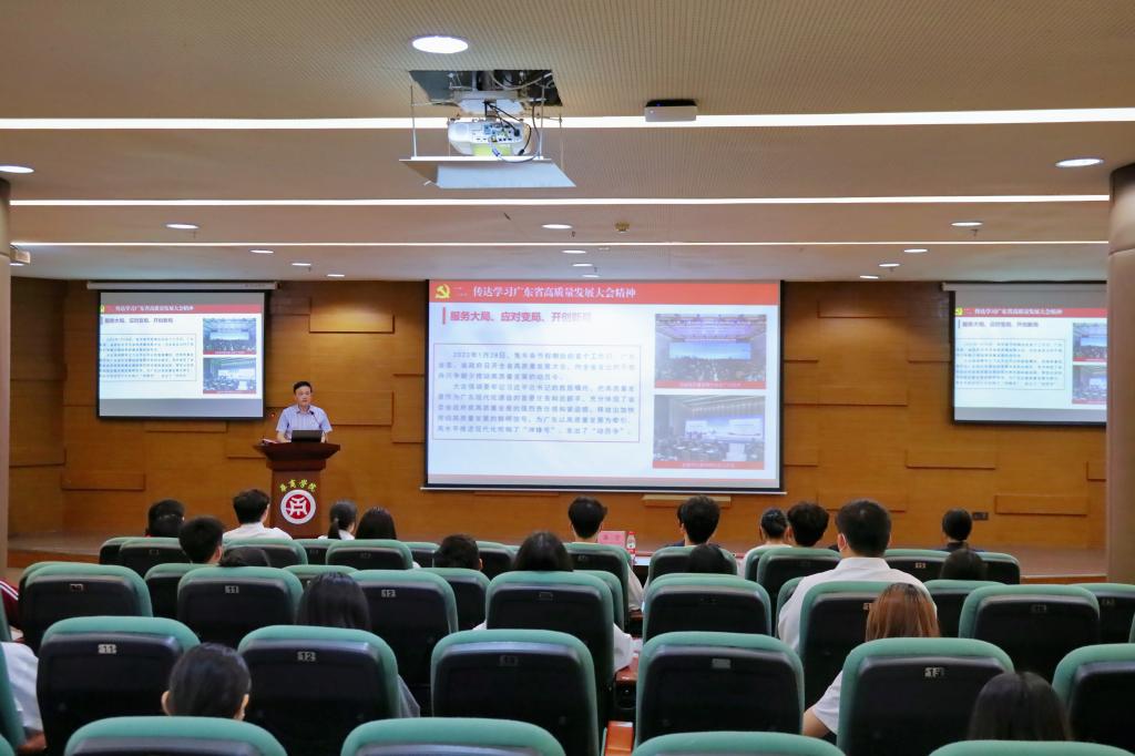 苏宁书记从“全面系统学习贯彻党的二十大精神,更好凝聚思想共识、激发奋进力量”“传达学习广东省高质量发展大会精神,强化党建引领,以高质量党建推动学校事业高质量发展”“以习近平总书记系列重要讲话精神为指引,践行四讲,推动华商青年工作高质量发展”三个方面展开授课。苏书记强调,2023年是全面贯彻落实党的二十大精神的开局之年,也是学校新征程中具有特殊重要意义的一年,广大学校共青团干部、学生骨干,要更加深刻领会新时代赋予共青团的历史使命和责任担当,要进一步强化自身建设,紧跟党走,从严治团,焕发共青团昂扬向上的时代风貌,推动华商青年工作高质量发展。党的二十大擘画的宏图盛景,是国家的、民族的、人民的,更是青年的,广大青年要牢记习近平总书记的殷切嘱托,在党的领导下,以理想者、担当者、吃苦者、奋斗者的姿态,奋进新征程,诠释新青春,创造新业绩。我们要继续知重负重、砥砺前行,在应对挑战、攻坚克难中不断激发新动能,为高质量青年工作建设、学校高质量内涵式发展贡献青春力量!