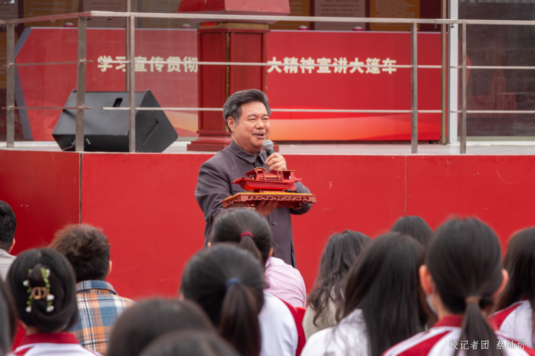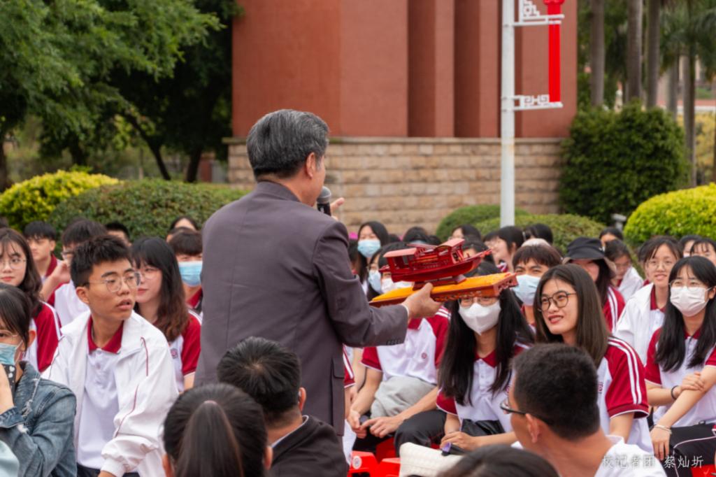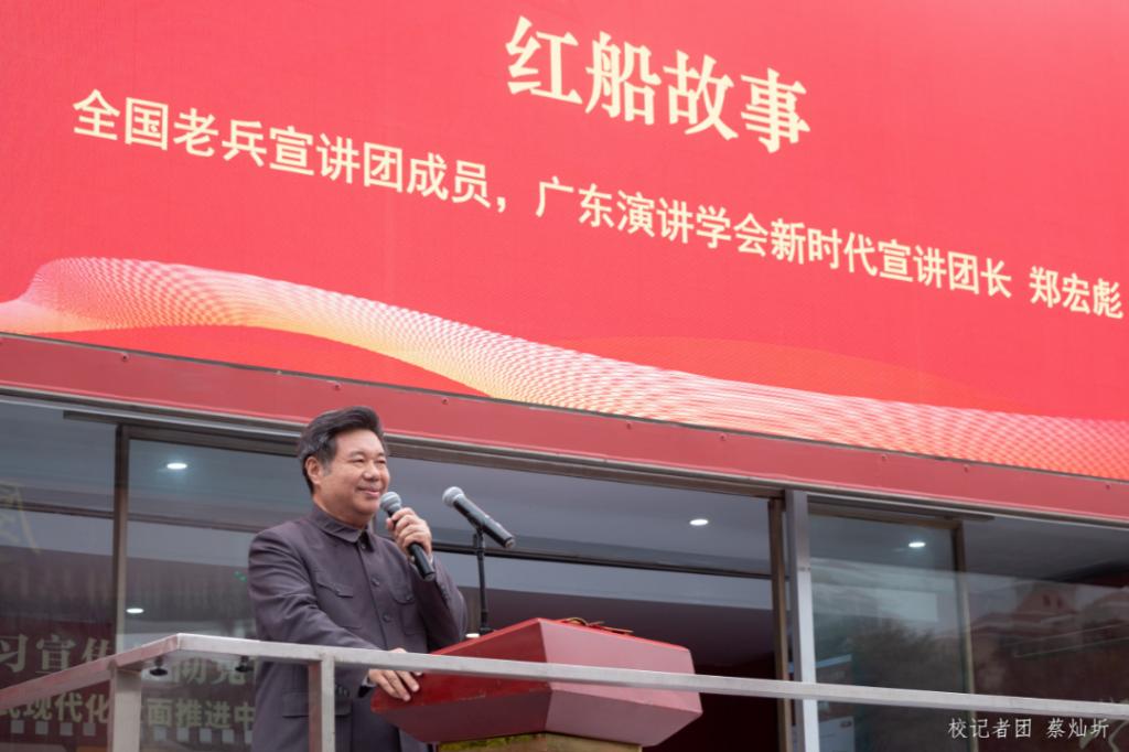 本次启动仪式采用“线上+线下”的方式进行,同时有近2万多名师生在线观看。郑宏彪顾问以“红船精神”为主题作党的二十大精神微宣讲。他以中国共产党的伟大时空观念为引,结合党的二十大报告及习近平总书记的重要论述,生动阐述了红船精神重要性,并号召在场师生以“长风浩荡,红船远航”的口号呼唤“红船”。在广大师生浩大的呼喊声中,一艘载满中国希望的红船缓缓驶来。郑顾问呼吁当代年轻人要怀揣理想,坚定信念,在建设社会主义现代化强国、实现中华民族伟大复兴的征途中贡献青年力量。最后,郑宏彪顾问激情高昂地朗诵了自己撰写的一首红色诗歌《共同富裕》,激励广大师生要矢志不渝跟党走,续力奋发新征程,走好新的赶考路。