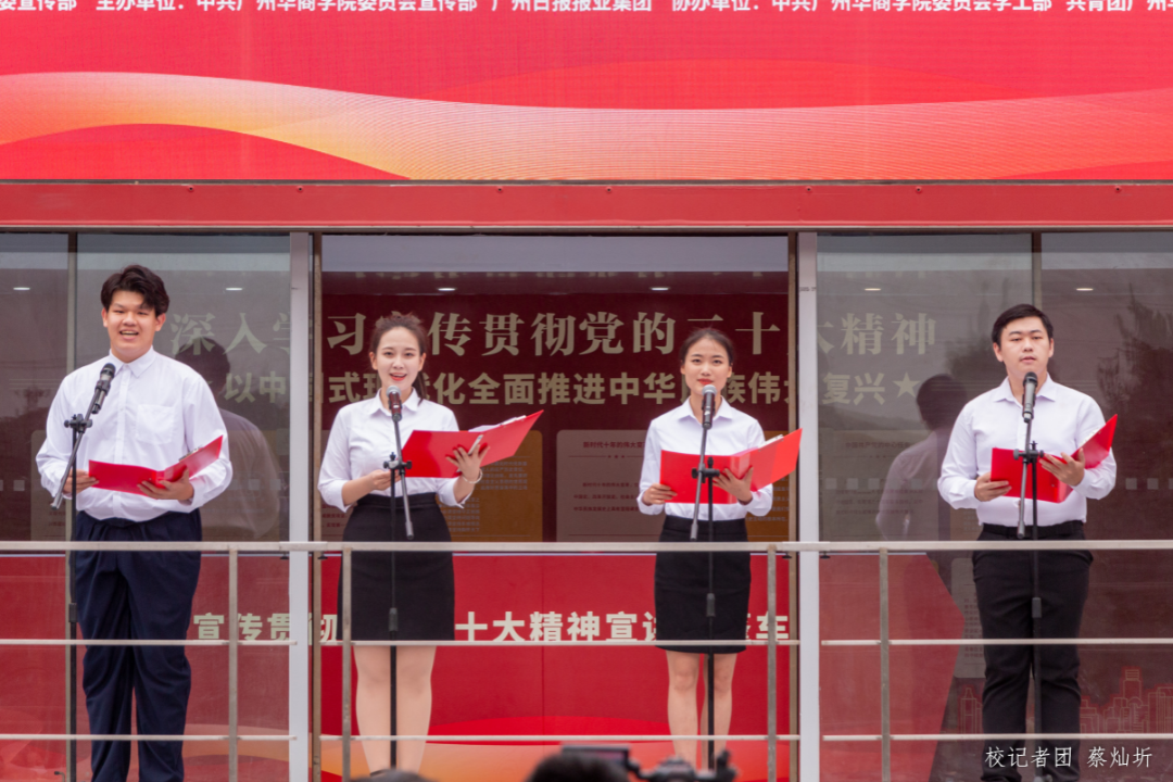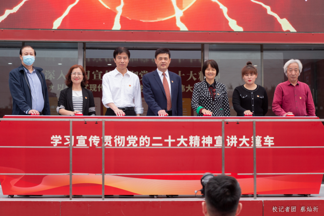 为深入学习宣传贯彻党的二十大精神,扎实推动党的二十大精神走深走实,将全体师生的思想和行动统一到党的二十大精神上,3月21日下午,鸭脖在“创百年名校,育华夏英才”广场前举行学习宣传贯彻党的二十大精神——yabo鸭脖官网“百人+百场”大篷车进华商宣讲活动启动仪式。参加本次启动仪式的有校党委书记苏宁,党委副书记、副校长王锦秀,副校长王力东及各职能部门负责人、二级学院党组织副书记、马克思主义学院教师代表、各学院学生代表、各单位宣传联络员。此次活动还邀请了广东省红色文化研究会、红色宣讲团高级顾问郑宏彪作党的二十大精神微宣讲。