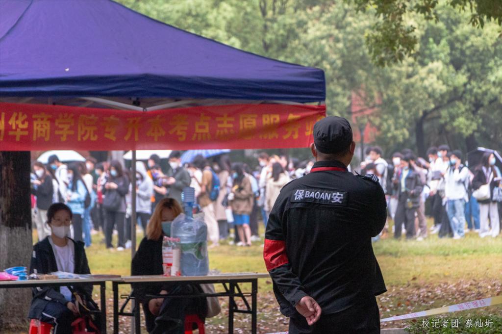 鸭脖志愿服务组积极做好组织、安排、培训志愿者的志愿服务工作。志愿者们按照学校普通专升本招生考试工作领导小组指示,被分配在各处志愿服务站点提供相应服务,全体志愿者尽职尽责,热心解决外来考生的问题,指引考生顺利到达考场。现场除了穿着红马甲的青年志愿者外,还有党委宣传部、团委老师以及后勤处工作人员参与到考务工作,指引考生安全、有序进入各楼栋入口进行“人脸识别验证”。