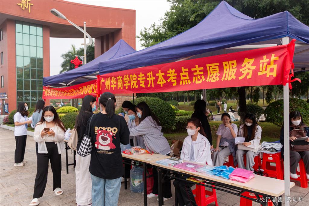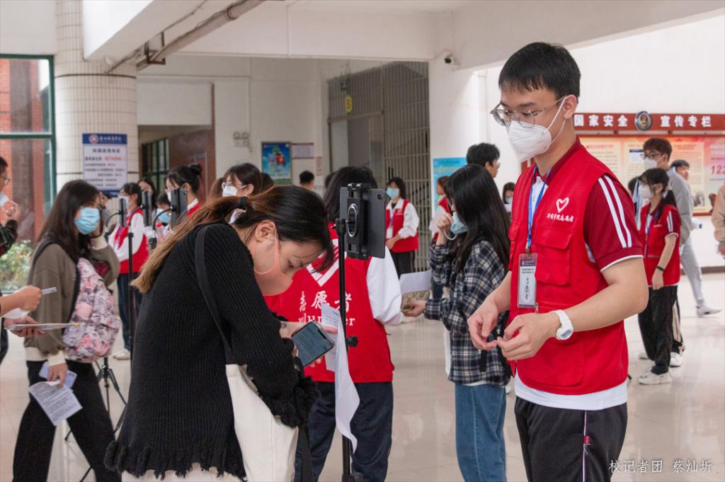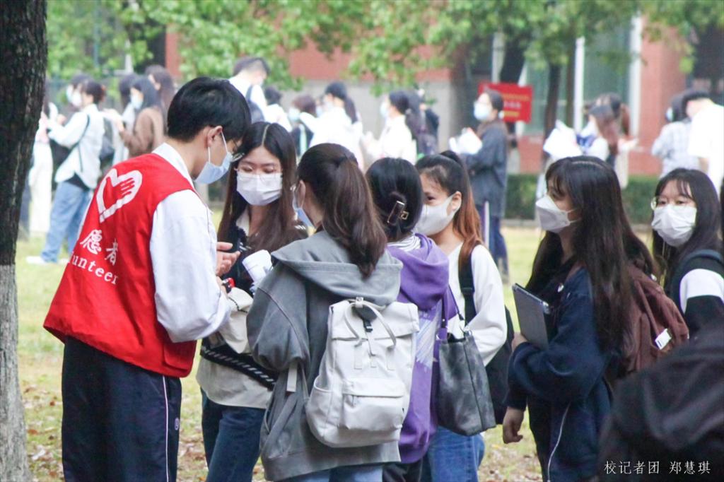 身穿红色马甲的志愿者们,也是校园内最鲜亮的色彩。在考场周围,志愿者团队设立了服务站,给考生和考生家长提供各类咨询求助服务,给广大考生营造一个温暖的考试氛围。
