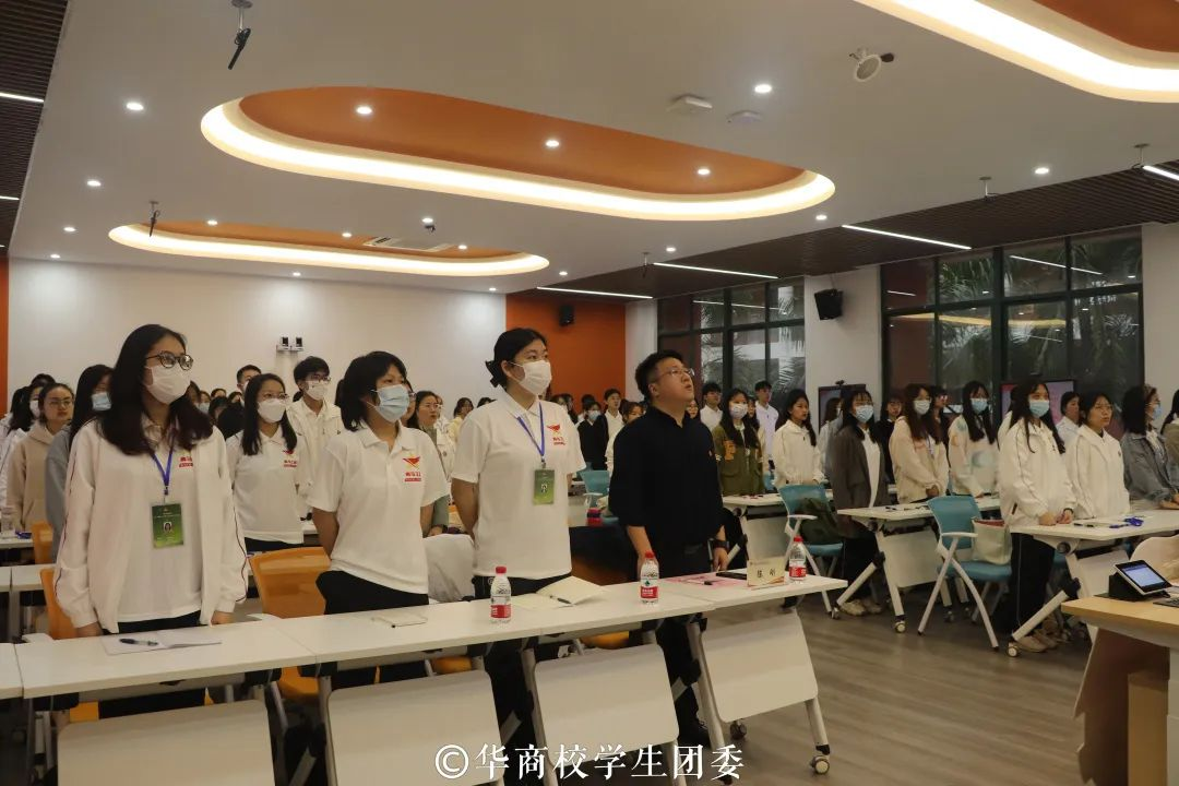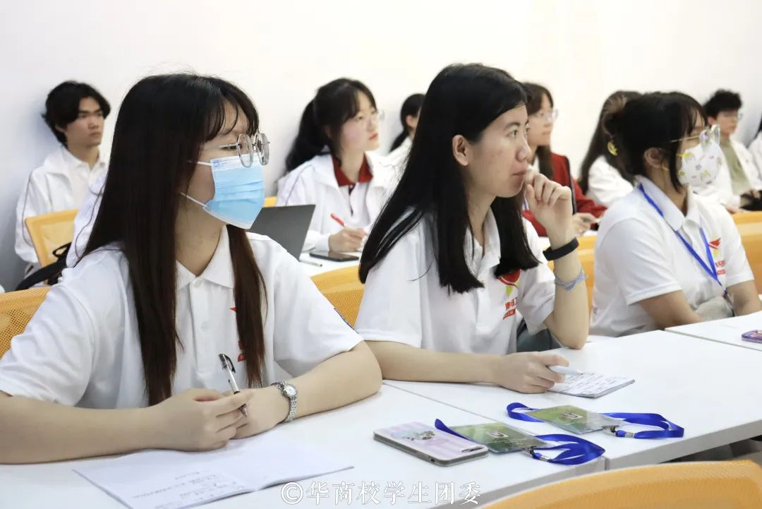 青年是推动时代发展的重要力量,应以奋斗的姿态书写时代的新篇章,让青春之花在不懈奋斗中绚丽绽放。陈刚书记聚焦暑假“三下乡”社会实践活动,通过各类照片生动形象地向在场学员们讲述了华商学子们在“三下乡”社会实践活动的故事,展现华商学子们的风采。他强调,新时代的青年生逢其时,重任在肩。奋斗正当时,“躺平”不可取,“躺赢”不可能,他鼓励在场学员们要把“人民至上”落实在实践上,稳稳掌握时代“接力棒”,在积极奉献中实现个人价值,砥砺品格,增长自身本领,自觉担当起时代使命,争做有理想、敢担当、能吃苦、肯奋斗的新时代好青年。