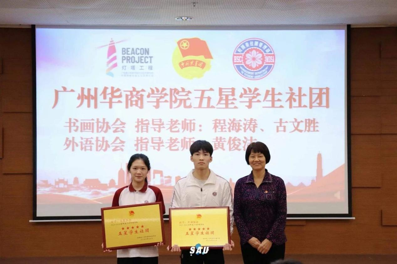 (王锦秀副校长为鸭脖2022年度五星社团颁发牌匾)