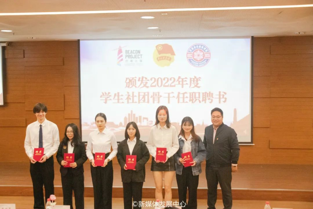 大会在激昂的团歌声中拉开序幕。随后,现场师生观看2022年度yabo鸭脖官网学生社团总结视频。一年来,鸭脖31个不同性质的学生社团在学校党委、行政及各职能部门的关怀与支持下,始终坚持党管学生社团的工作理念,听党话、跟当走,持续深化改革,广泛开展阳光健康、积极向上的社团活动,在国家级、省市级各类比赛、活动中取得多项荣誉成果,充分展现鸭脖学生社团青春风采,涌现一批华商特色的品牌社团,形成“一社一品”的良好局面。