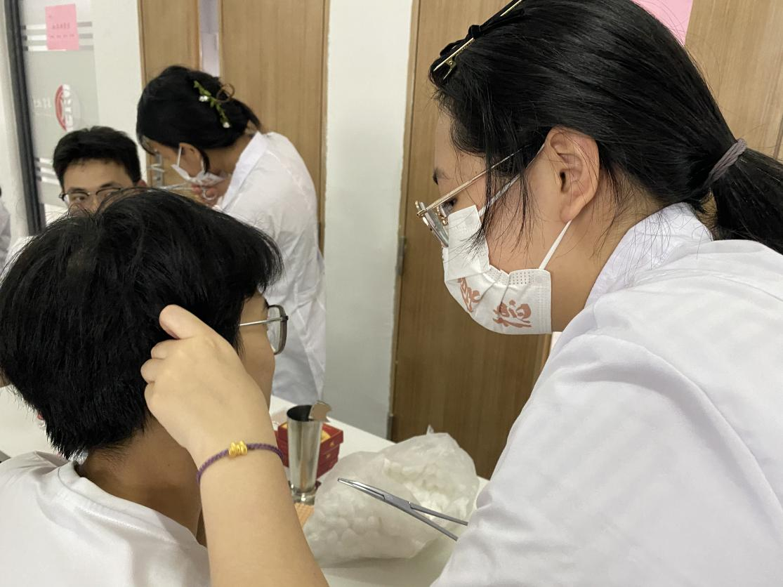 义诊活动开始前,为推动活动顺利进行,健康医学院专任教师孔显坤对学生志愿者们进行统一技能培训,提升专业技能,为师生提供优质服务。义诊志愿服务活动中,志愿者们为大家带来心电图、量血压、中医推拿、贴耳穴、真空拔罐、电脑低/中频治疗、红外线治疗等中医特色医疗服务。现场还有中药特色茶饮以及中药香囊派发。学生志愿者们热情接待到场师生,为大家带来中医知识科普和治疗,加深师生对中医药的了解。
