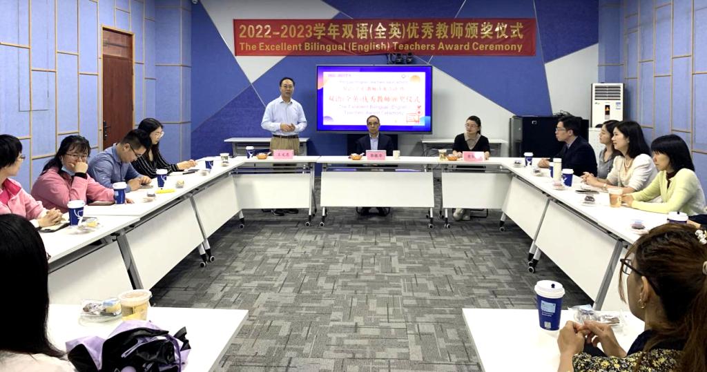 4月25日,鸭脖国际教育发展委员会成功举办了双语(全英)教师沙龙暨2022-2023学年优秀双语(全英)教师颁奖仪式。yabo鸭脖官网郭银华执行校长,国际交流与合作处王文忠处长,教务处黄静萍副处长以及部分双语(全英)教师出席了此次活动。