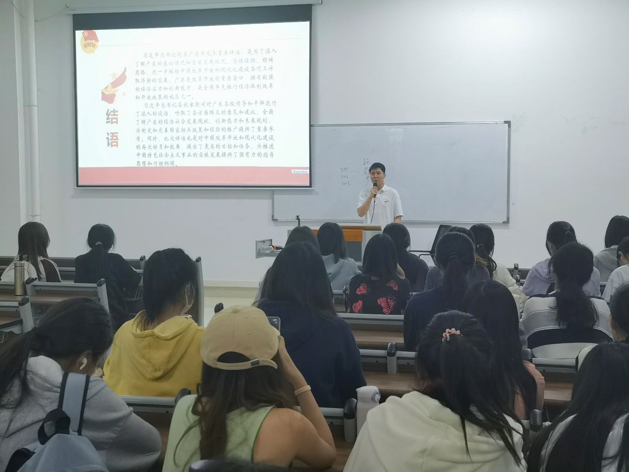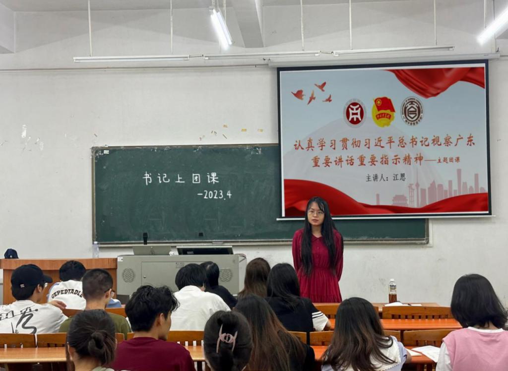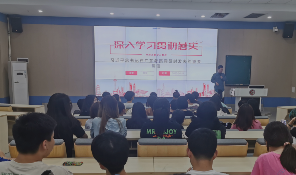 4月18日,会计学院团委王璐书记、黄健副书记以“学习贯彻习近平总书记视察广东重要讲话重要指示精神”为主题分别在增城校区励志楼A208和四会校区六号楼207开展专题团课。课上全面学习了习近平总书记视察广东提出的新要求:一是深化改革开放;二是推动高质量发展;三是提高发展平衡性和协调性;四是加强党的领导和党的建设。两位老师表示,习近平总书记的重要讲话高屋建瓴、情深意切、催人奋进,为广东在推进中国式现代化建设中走在前列指明了前进方向、注入了强劲动力、提供了根本遵循,让我们倍感温暖、备受鼓舞、倍增干劲。会计学院的同学们应当切实增强做好学习宣传贯彻工作的思想、政治和行动自觉,增强责任感、使命感、紧迫感,刻苦努力学习,全面发展自我,成长为可堪时代重任的时代新人!