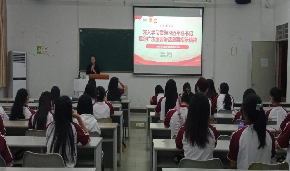 4月25日,文学院团委双校区同步开展“深入学习贯彻习近平总书记视察广东重要讲话、重要指示精神”主题团课。文学院团委副书记何锦浩、学生会指导老师丘淳苑分别在四会校区、增城校区授课。两位老师传达学习贯彻习近平总书记视察广东重要讲话、重要指示精神,学院团委学生骨干,学生会主要成员参加本次学习。习近平总书记亲临广东视察,发表重要讲话、作出重要指示,对广东推进中国式现代化建设提出明确要求,为广东在新征程中更好推进中国式现代化建设指明了前进方向、提供了根本遵循。老师们号召文学院团委学生骨干要深刻领会习近平总书记对广东工作的殷切期望和信任重托,坚定沿着习近平总书记指引的方向继续前行,切实把习近平总书记重要讲话、重要指示精神贯彻落实到学习和工作的全过程各方面,抓住时代机遇,脚踏实地奋斗,以实际行动在助推国家高质量发展中彰显新担当,作出新贡献。