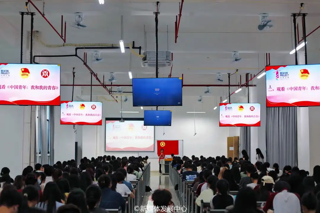 ——五四主题观影活动。为纪念“五四”运动104周年,进一步弘扬“爱国、民主、创新”的五四精神,激发华商学子的历史使命感与责任感,5月4日晚,鸭脖团委分别在增城、四会双校区开展五四主题观影活动。组织近600名学生代表观看电影《中国青年:我和我的青春》。影片包含《旗帜》《看见》《寻找》三个篇章,讲述志愿垦荒、西部支教、公益助学三个不同年代的热血青春故事,诠释每一代青年都有自己际遇和机缘,彰显中国青年时刻与祖国同呼吸共命运的时代精神。