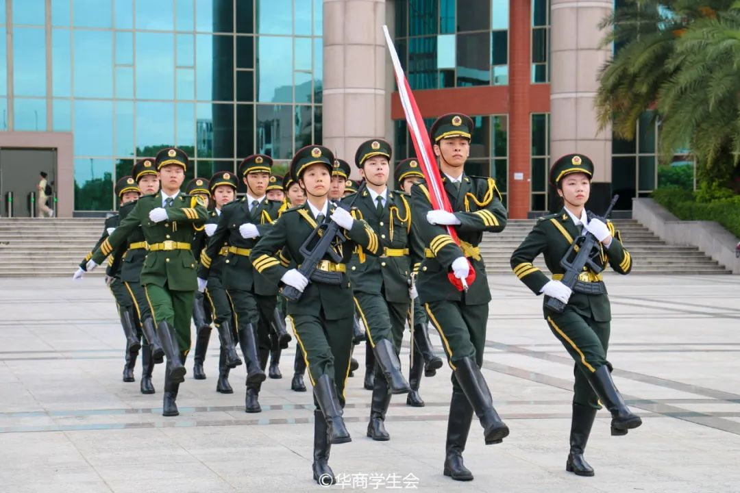 ——主题升旗仪式。早上7:30,在图书馆广场举行“五四”青年节主题升旗仪式。校级学生组织代表、二级学院团学组织代表、学生社团代表、青马班学员代表参加本次升旗仪式。和煦的朝阳洒在国旗上,国旗护卫队迈着坚毅的步伐,护卫着鲜红的国旗走向升旗台,步步铿锵,踏出掷地有声的青春强音。五星红旗在国歌声中冉冉升起,飘扬在图书馆广场上空,与青年学子胸前佩戴的党徽、团徽遥相呼应,彰显华商学子青春风采。