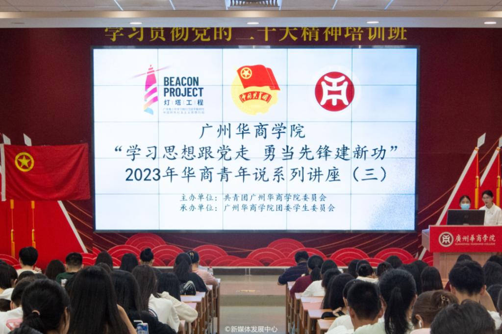 ——华商青年说主题讲座。为激励华商青年踔厉奋发、挺膺担当、不懈奋斗,晚上18:30,健康医学院团委书记胡万培在增城校区励志楼开展“我和我的青春”主题讲座。增城校区300余名团员青年聆听本场讲座。