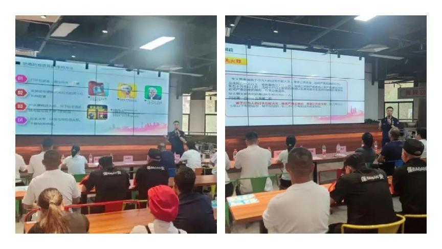 此次会议由增城区消防救援站陈奕帆班长主讲消防安全事宜。培训会议重点讲解了案例警示、消防法律、四个能力等三个方面的内容。