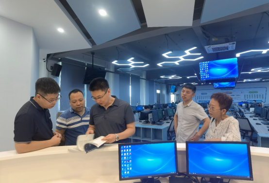 交流会后,周书域副院长陪同桂郭德兵主任参观了鸭脖经管类跨专业综合仿真实习平台、金融科技实验平台、大传播实验平台、华商云会计产业学院,重点参观了华商云会计产业学院运营中心及财务共享服务中心。