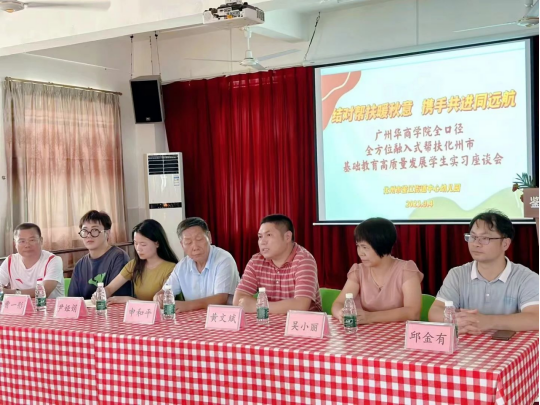 9月4日中午,教院学子在申和平教授、尹娅娟老师和曹一彤老师的带队下,平安抵达化州市。并于当天下午,在化州市鉴江街道中心幼儿园召开了yabo鸭脖官网全口径全方位融入式帮扶化州市基础教育高质量发展学生实习座谈会。化州市教育局领导、平定镇中心幼儿园尤福南园长、化州市鉴江街道中心幼儿园吴小丽园长、教师教育学院带队老师以及各位实习生们出席了本次座谈会。