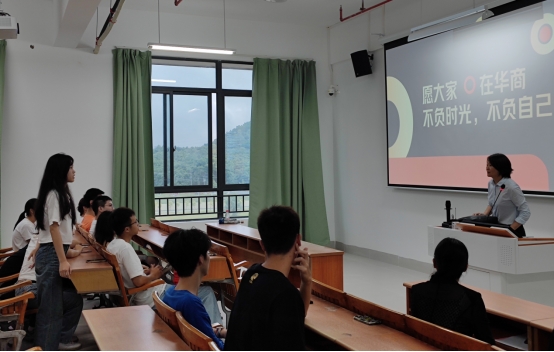 同时,为提升学生在读期间竞赛获奖机会,张秀丽副主任受管理学院创业秘书杨惠茜老师委托,向行政管理专业的新生们介绍了大学生创新创业的意义、管理学院创新创业的成果、管理学院创新创业组织等内容,鼓励各位新生多参与创新创业交流和学术活动,在比赛实践中提升自己。在师生互动环节,三位老师针对新生比较关心的专业学习、实习就业、考公考研、考级考证、应征入伍等问题给予答疑解惑。
