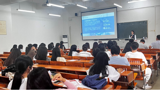 中国建设银行黄志敏主任对中国建行及其广东省分行进行介绍,对“行有建树 梦无边疆!建行广东省分行2024年度秋季校园招聘”情况做了简要阐述,对招聘岗位情况、要求以及职业晋升途径做了详细的阐述,并鼓励和欢迎毕业生们进行网申(截止时间为10月13日),加入中国建设银行。