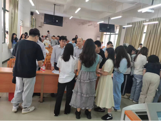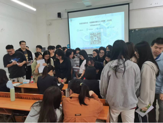 东莞证券长安分公司邓汉新总经理助理、中国建设银行广州增城支行黄志敏主任和从化支行赵锐副书记等分别与华商金融学院同学们展开了热烈的现场交流,就岗位任职要求、招聘流程、职业发展、行业前景等方面展开详细的交流。宣讲会还进行现场简历投递、面试等。同学们对本次校招非常踊跃,积极投递简历。