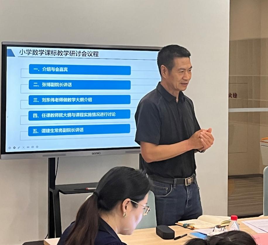 刘东伟老师就小学数学课标的教学大纲做进一步介绍,并就课程的学习提出个人的见解并向校长们提出相关的教学研讨问题。