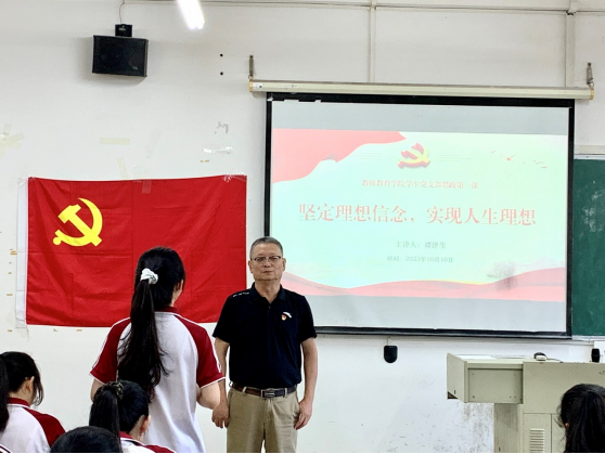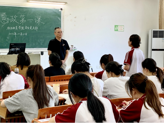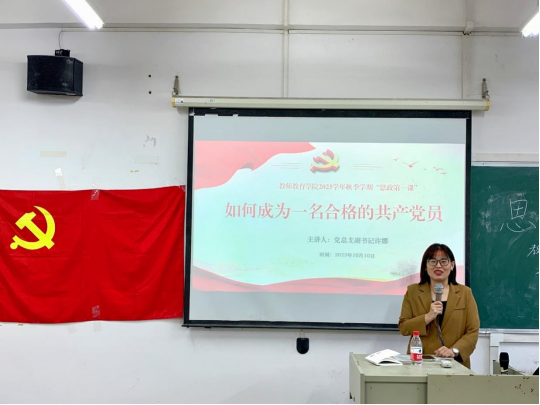 为全面贯彻党的教育方针,深入学习宣传贯彻党的二十大精神,深刻把握新时代伟大成就和中国共产党发展历程。教师教育学院于2023年10月10日下午16:00在广州校区厚德楼C203开展2023学年秋季学期“思政第一课”,旨在帮助学生进一步提高思想觉悟、道德水准、文明素养,培养能够担当民族复兴大任的时代新人。本次授课由教师教育学院副院长谭建生教授、教师教育学院党总支副书记许娜同志主讲。