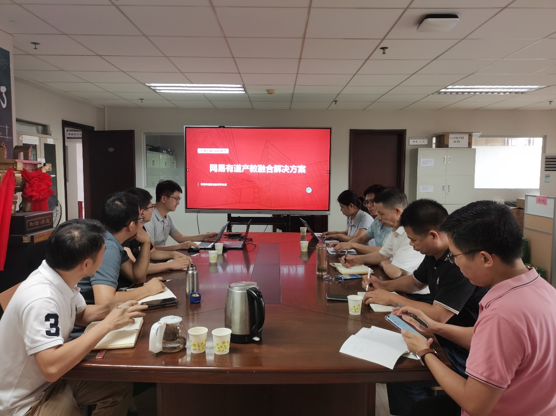 会议由人工智能学院产教融合副院长杨波副教授主持。出席会议的人员有:人工智能学院院长戴经国教授、副院长叶仕通副教授、人工智能系副主任洪绍勇副教授、数字媒体技术专业马焕坚老师,网易有道公司解决方案总监刘尹、王伟邦,华为政企广州市教育经理罗泽建、华为企业培训与认证部广东院校业务经理梅宇,以及华为生态公司中软国际吴楚杰、旷正中、黎煌剑。