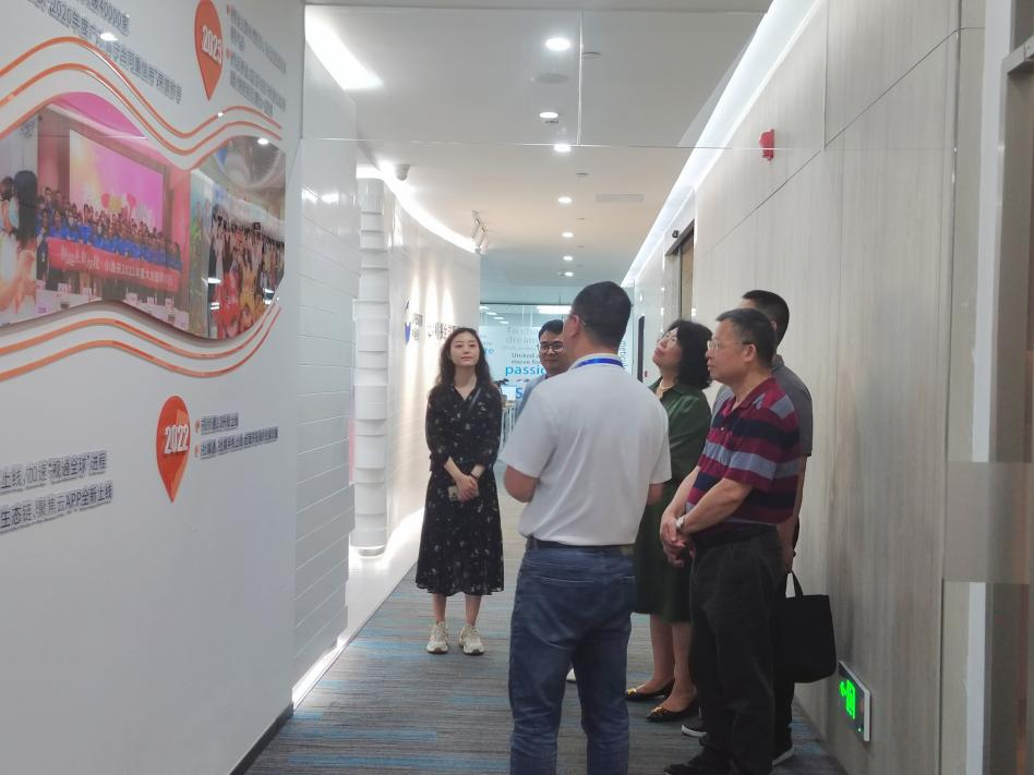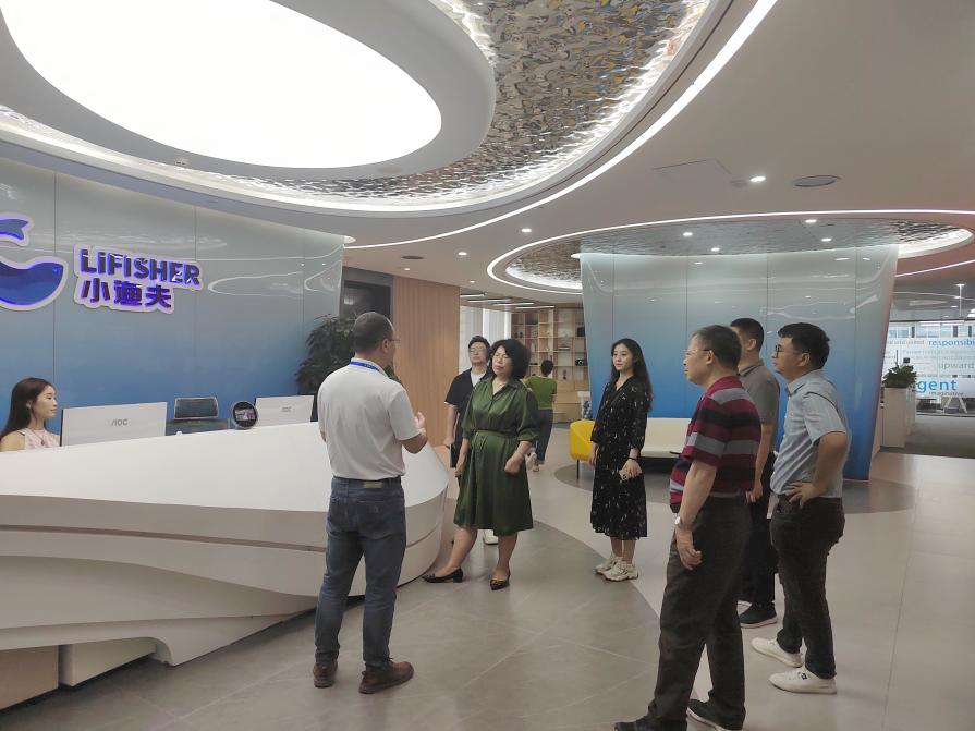 为深化产教融合,促进教育与产业的无缝对接,培养契合行业前沿需求的高素质应用型人才,2024年5月10日上午,产教融合办公室主任唐明琴、经济贸易学院院长李广明、经济贸易学院院长助理石立、经济贸易学院跨境电商系副主任曹维以及广州桃花岛电商咨询有限公司商务总监刘茂彬一行赴广州经纬国际控股集团有限公司旗下的小渔夫跨境电商公司(以下简称“小渔夫”)参观交流。