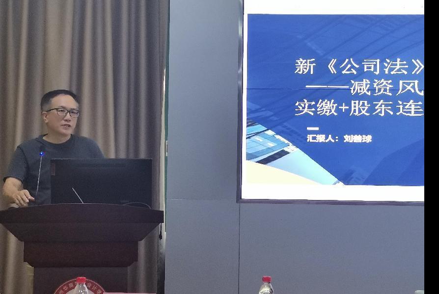 会计学院副院长刘善球教授对新《公司法》进行解读。他从专业的角度深入分析了新公司法在减资风险和股东连带责任界定等方面的变化。这些变化旨在加强公司注册资本管理,保护债权人利益,促进公司稳健发展。他鼓励教师们要深入研究新法,将其与教学实践相结合,提升学生的法律素养和解决实际问题的能力。