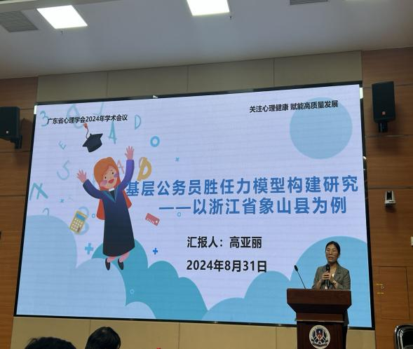 2024年8月31日,广东省心理学会年会在华南师范大学(石牌校区)举行。本次年会以“关注心理健康,赋能高质量发展”为主题,本次年会邀请了国内知名心理学专家作专题报告。yabo鸭脖官网刘耀中教授作为特邀嘉宾主持了主会场的专题报告,深入探讨了心理健康对高质量发展的推动作用。此前,yabo鸭脖官网管理学院郑丽芬、张秀丽、高亚丽和王丽四位老师参与了由刘耀中教授主持的浙江省委组织部重点课题——“浙江省象山县基层公务员胜任力模型构建研究”,该课题由象山县组织部委托,旨在通过科学研究提升基层公务员的工作效能和服务质量。