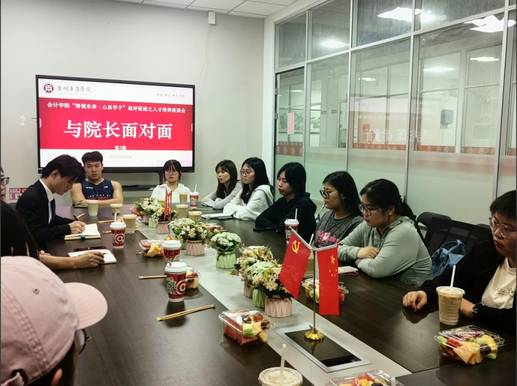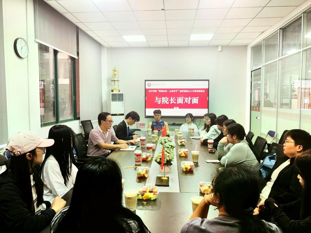 追求卓越教育,倾听学子心声。会计学院秉承“智领未来·心系学子”的理念,于10月11日在会计学院会议室举行“与院长面对面”第3期座谈会。会计学院副院长刘善球教授、学工办副主任杨烨瀚、辅导员陈海鹰老师以及21级15名学生代表参加本期活动。