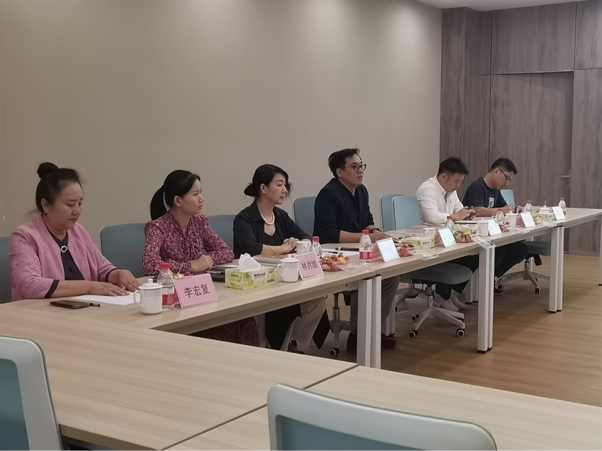 参观结束后,双方在教师发展中心互动室5举行座谈交流会。创意与设计学院陈晓坚副院长首先对文化馆领导的到来表示热烈欢迎,并简要介绍了学院的基本情况。随后,陈副院长详细阐述了学院在非遗项目上与增城区相关政府部门的合作概况,包括共同举办非遗文创大赛、推动非遗文化进校园等一系列举措。这些合作不仅促进了非遗文化的传承与发展,还为学生提供了实践锻炼和创新创业的宝贵机会。