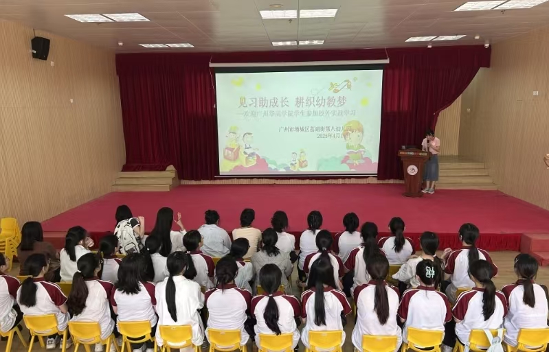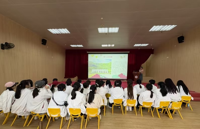 2025年4月13日,教师教育学院卢莹、魏晨瑞两位教师带领22本学前教育(专升本)1、2班全体学生,走进增城区荔湖街第八幼儿园,开展融合《幼儿园环境创设与利用》《学前儿童科学教育》《幼教品牌创设与管理》三门课程的跨学科实践。此次活动以“真实场景赋能专业成长”为核心,通过沉浸式体验,深化学生对幼儿园文化建构、环境创设及科学教育的理解,精准对接应用型学前教育人才培养目标,助力学生从“理论学习者”向“实践研究者”的角色蜕变。