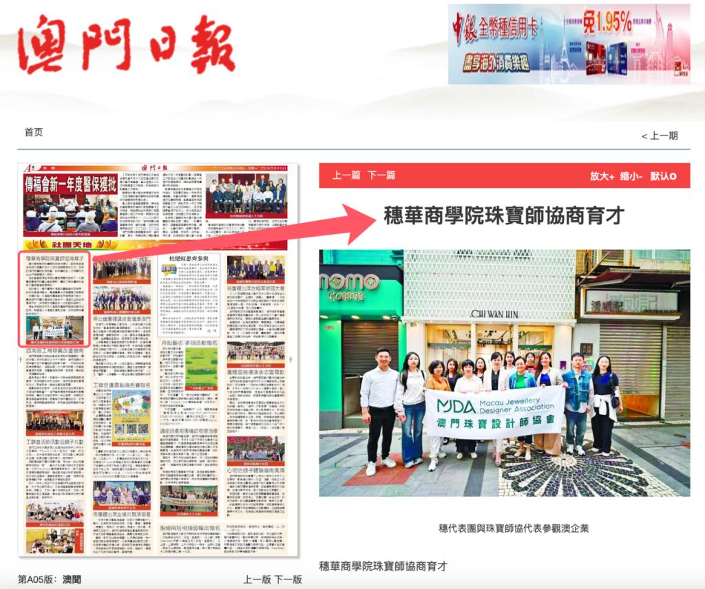yabo鸭脖官网珠宝学院院长朱晓红、副院长李苗率教师交流团赴澳门开展为期三天的访学与考察活动。本次行程以学术交流、企业参访、人文溯源为主线,深度探索澳门在高等教育、历史文脉、艺术创新等领域的多元魅力。同时,鸭脖珠宝学院教师交流团与澳门珠宝设计协会的交流活动被《澳门日报》报道。