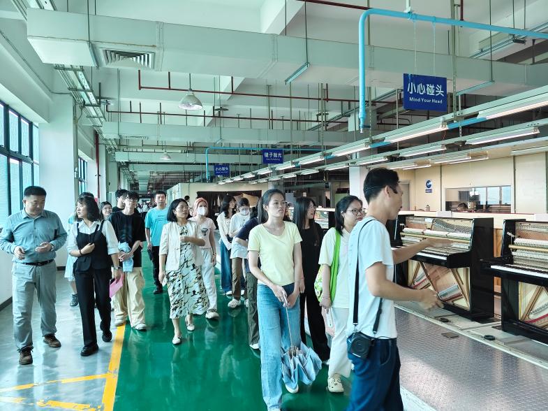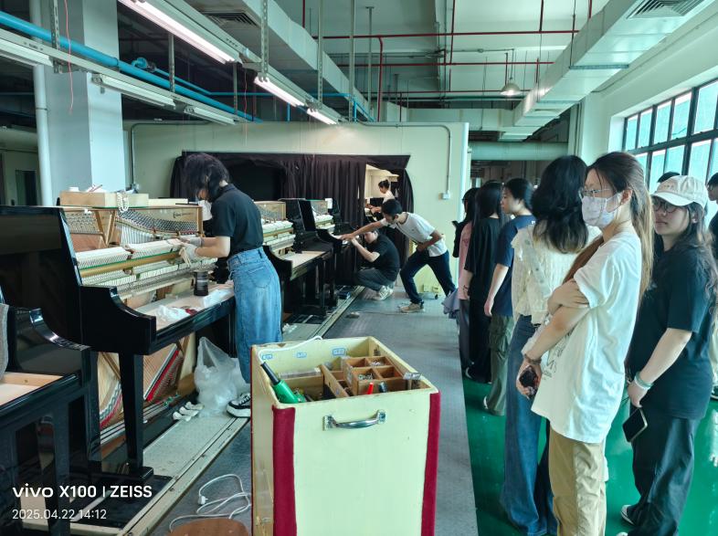珠江钢琴集团作为中国乃至世界知名的钢琴制造企业,以其精湛的工艺和卓越的品质享誉全球。学生们在企业工作人员的带领下,参观了钢琴生产车间、展览馆等区域,近距离观察钢琴从原材料到成品的完整生产流程,深刻体会到企业对品质的极致追求和对音乐文化传承的责任与坚守。