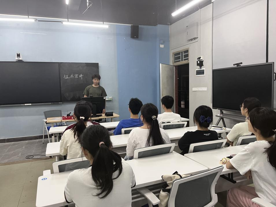 为响应2025年征兵工作号召,切实推进征兵工作落实,yabo鸭脖官网教师教育学院积极开展校园征兵宣传活动,鼓励学生投身国防事业,为国家的安全和发展贡献力量。2025年4月24日晚上,教师教育学院组织退役大学生士兵于励志楼开展以“青春铸军魂,热血报祖国”为主题的征兵宣讲会,会议由教师教育学院征兵负责人张雅芬老师主持。