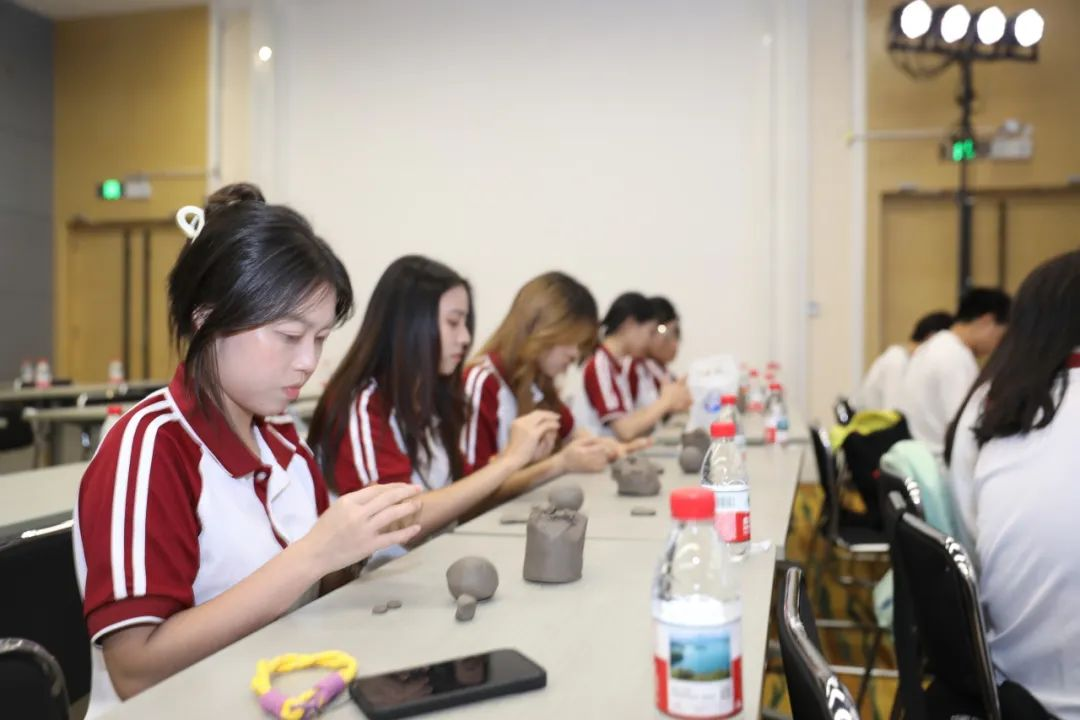 实践环节中,师生们以“陶泥舞狮”为主题开展手作体验。解说人员讲解了舞狮文化的千年历史及其吉祥、勇毅的象征意义,强调传统文化在当代创新中的核心价值。随后,通过分步骤教学,让学生亲手制作舞狮陶泥作品,引发其对文化传承与创新关系的思考。