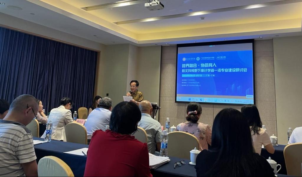 为推动鸭脖审计学省一流专业建设,提升专业建设质量,培养适应时代需求的审计专业人才,2025年6月6日-7日,会计学院召开“跨界融合·协同育人”新文科视野下审计学省一流专业建设研讨会。会议邀请了中南财经政法大学会计学院原院长张龙平教授、广东外语外贸大学会计学院原院长刘中华教授、广东财经大学会计学院原院长邢风云教授、广东轻工职业技术大学罗小凤主任以及广东财经大学会计学院张阳教授等专家学者参会。