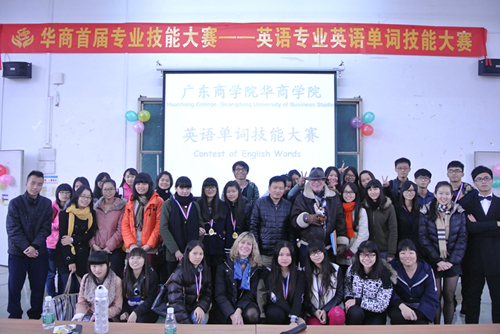 本报讯(记者 范泽邦)由华商学院教研室主办,外语系承办的首届英语单词技能大赛于12月17日下午举行。首届专业技能大赛共有6组选手参与了比赛,吸引了不少学生以及老师们的参与,其中外语系费小佳老师、外教Lori和Tom等老师也出席了活动并指导了现场的参赛者。